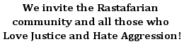 | We invite the Rastafarian Community and all those who Love Justice and Hate Aggression! |
