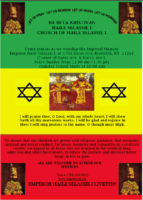 | The Church of Haile Selassie I 470A Gates Avenue Brooklyn, NY 11216 (718) 638 - 9013 usa@himchurch.org |