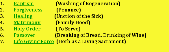 | The Church of Haile Selassie I Temple Worship established seven sacraments identified by Rastalogy as the seven pillars upon which Wisdom built her house. (Proverbs 9 v1) |